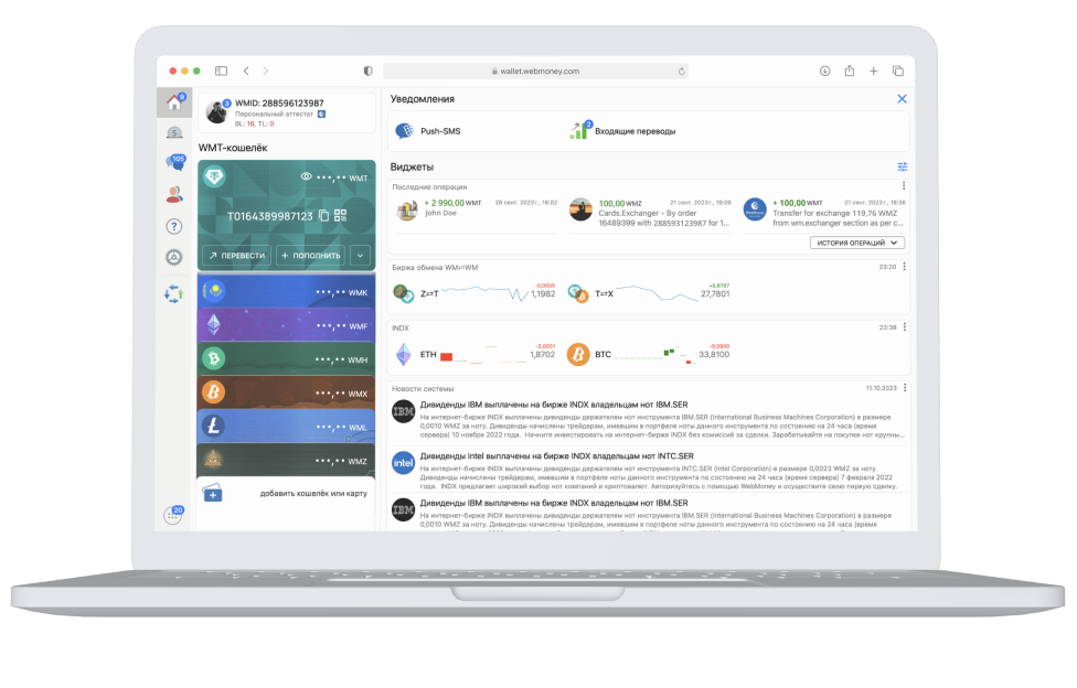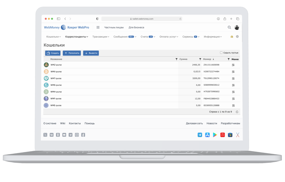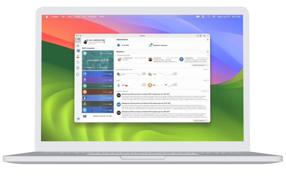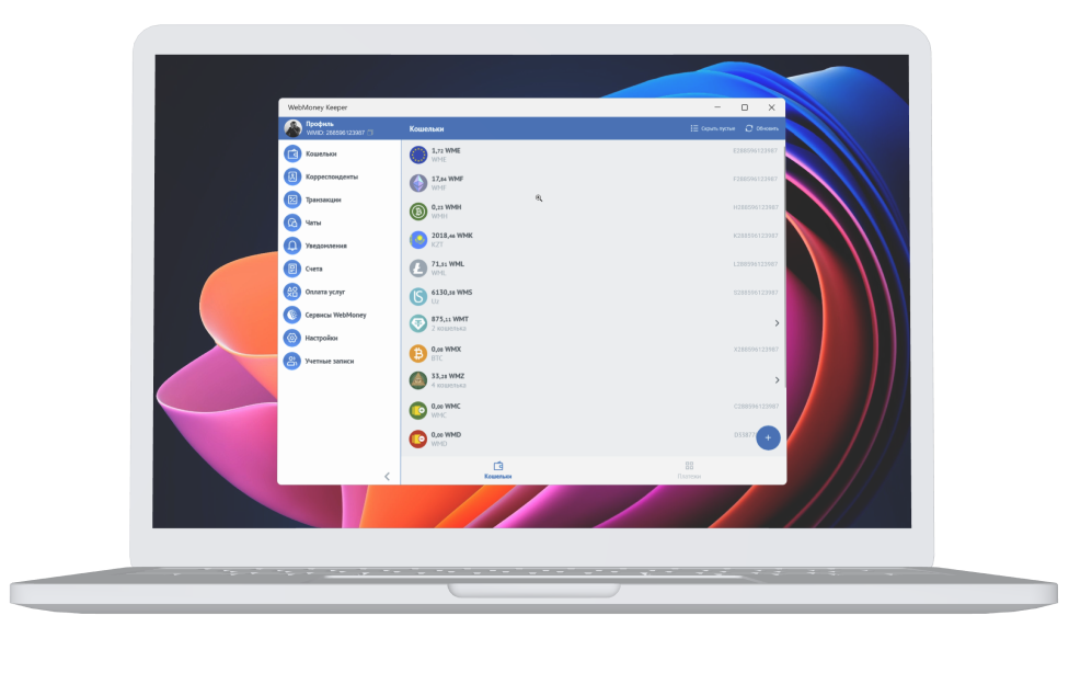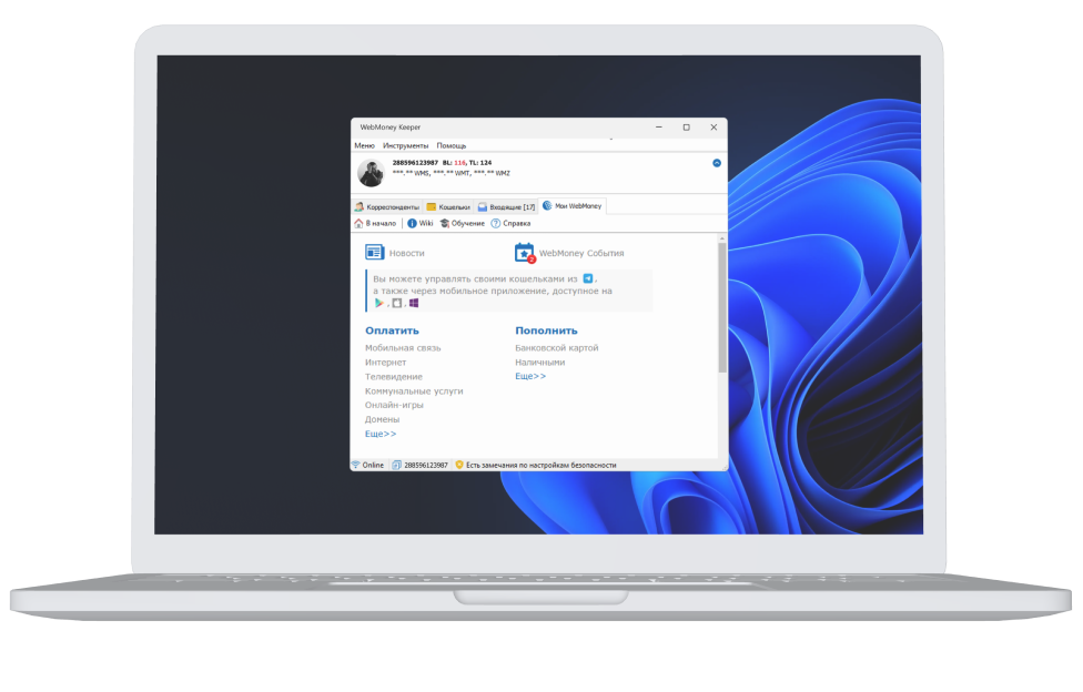 Quick and convenient access to main WebMoney functions: